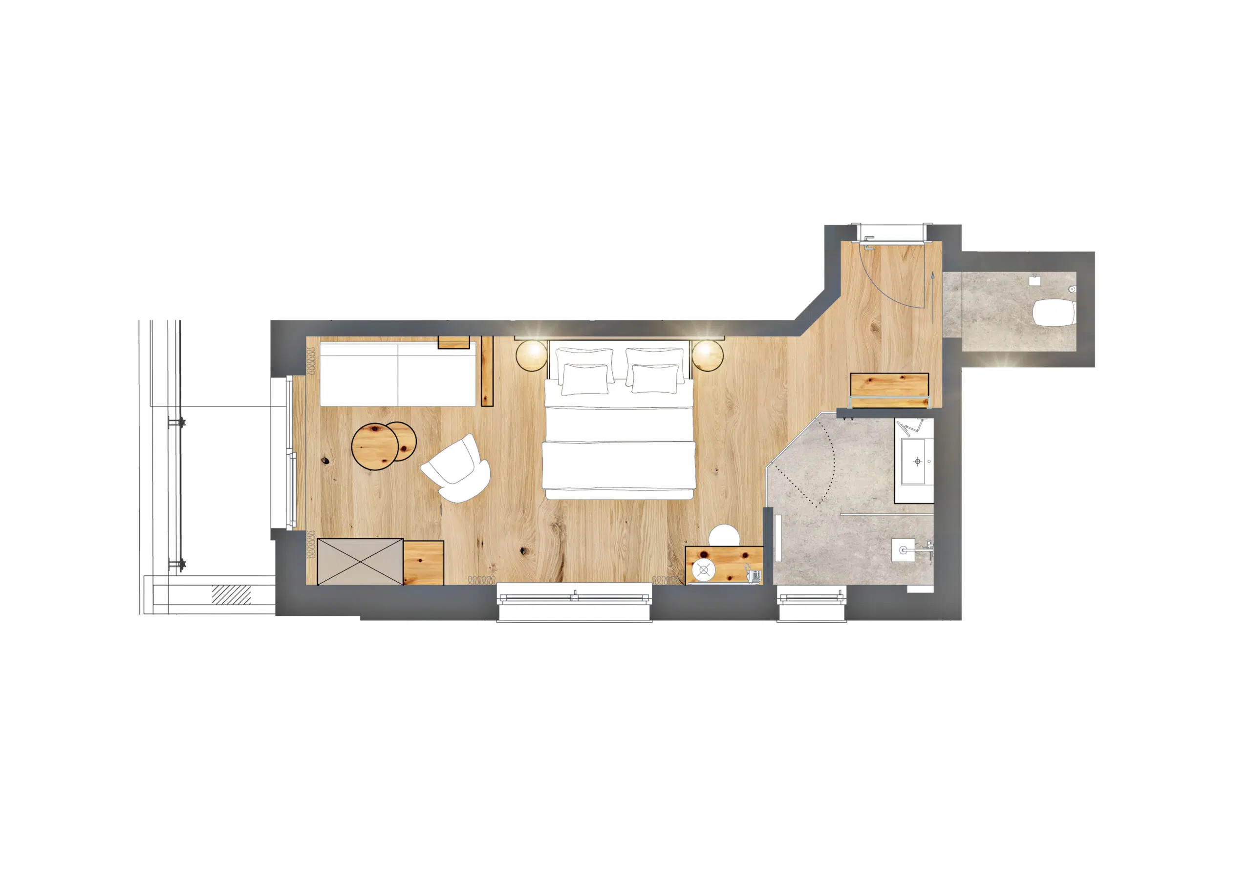 *Die gezeigten Zimmerbilder und Skizzen dienen als Wohnbeispiele. Abweichungen in Grundriss, Ausstattung und Dekoration sind möglich.
